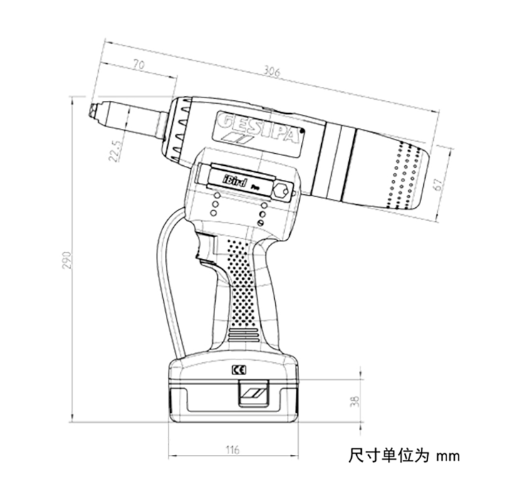 工作行程達25mm,可用于較長的抽芯鉚釘
